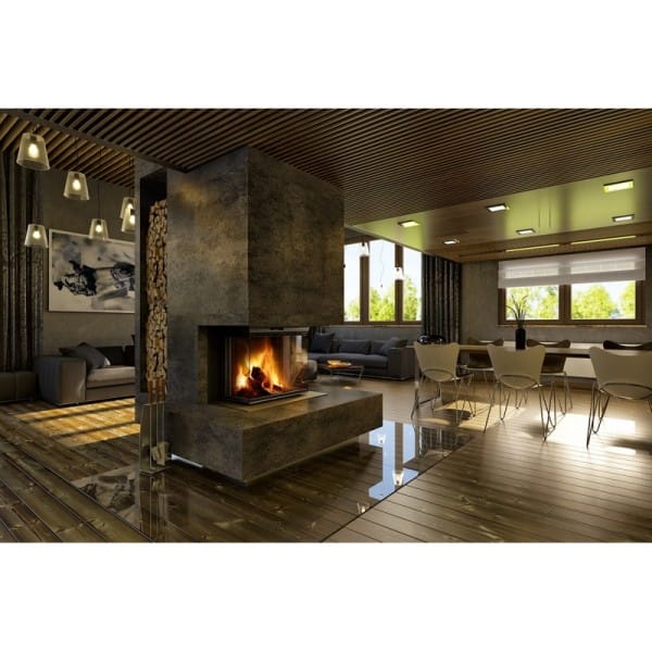 – Vitres exceptionnellement hautes qui offrent une vue luxueuse sur le feu