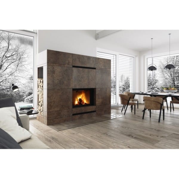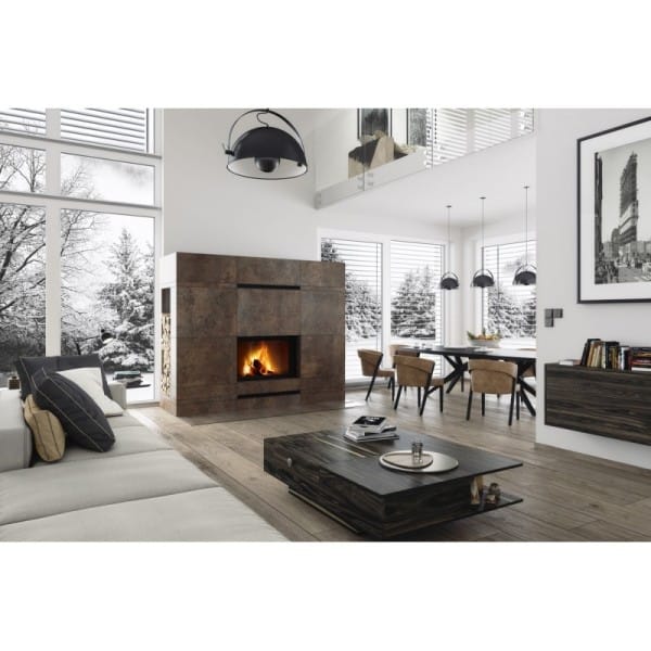 – La vitre exceptionnellement haute offre une vue luxueuse du feu